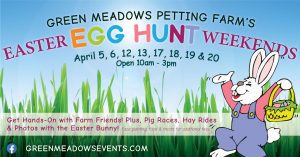 Easter Egg Hunts at Green Meadows Farm! We have three weekends of Easter Egg Hunts! Purchase your admission to the farm/hunts on our website (link below) or when you arrive. Below is some information about our hunts. This information may be updated as details come in so please check back on this page before you come to our egg hunts.